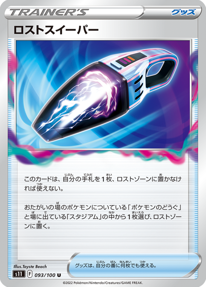 手札を1枚ロストゾーンに送ると、場のポケモンのどうぐかスタジアムを1枚ロストゾーンに送ることができる。